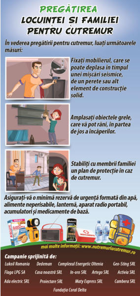 animate. Publicul țintă al campaniei va fi informat despre modalitățile de pregătire pentru efectele unui seism major și despre