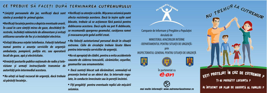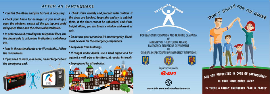 Campania națională de informare și pregătire a populației pentru cutremur ” Nu tremur la cutremur” este realizată pe fondul
